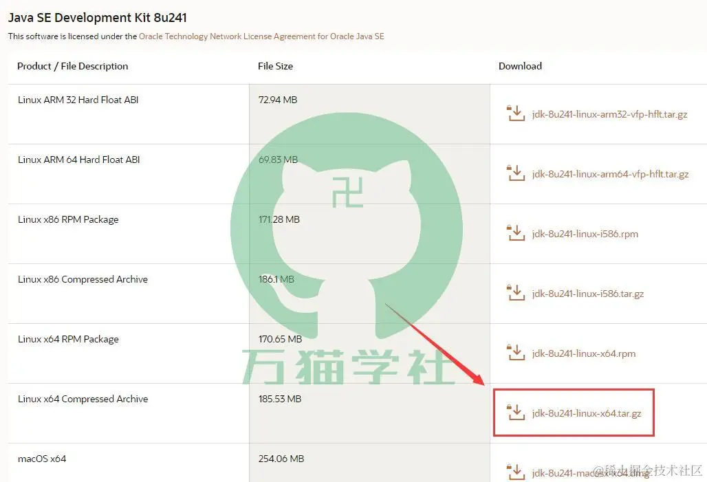 如果显示32,则是23位的Linux系统,如果显示64,则是64位的Linux系统。这里是64位的,所以下载Linux x64,如下图: