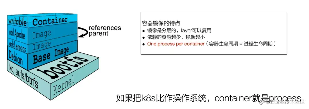 容器镜像有一个非常重要的概念叫“One process per container”(容器生命周期=进程生命周期)。我们可以认为容器就是K8s上的一个进程,如果把K8s比作操作系统,那么容器就是它上面运行的一个进程。进程的生命周期是可以被管理的。虽然容器有这么多的优点,但实际在用的时候也会遇到很多的问题。