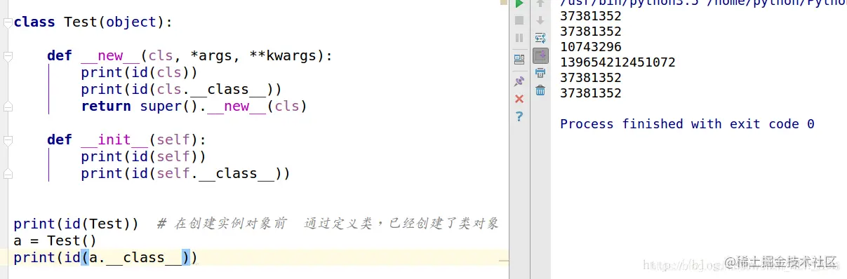 所有的实例对象都是由类对象创建的。 那么你可能会问:“”那是类对象是由什么创建的呐?“”创建Python语言的龟叔在Python解释器中,定义了一个上帝类即type元类,所有的类对象都是由元类对象创建,元类对象自身创建自身。即类本身也是一个对象即类对象。