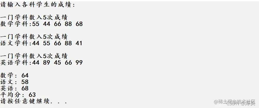 printf("\n数学: %d\n语文: %d\n英语: %d\n", v[0], v[1], v[2]);