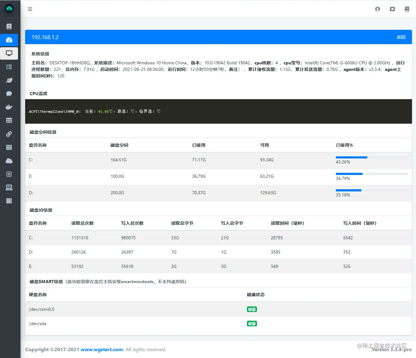 WGCLOUD是一款轻量高效的开源运维工具,设计思想为新一代极简高效运维系统,提倡快速部署,快速上手,分布式,高性能等特点