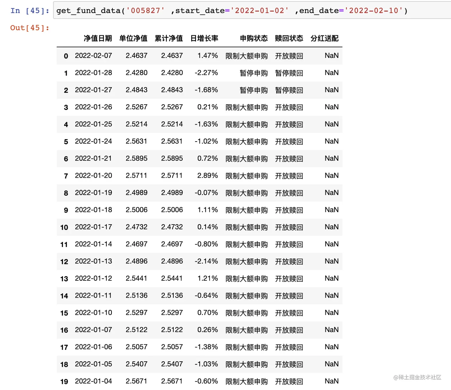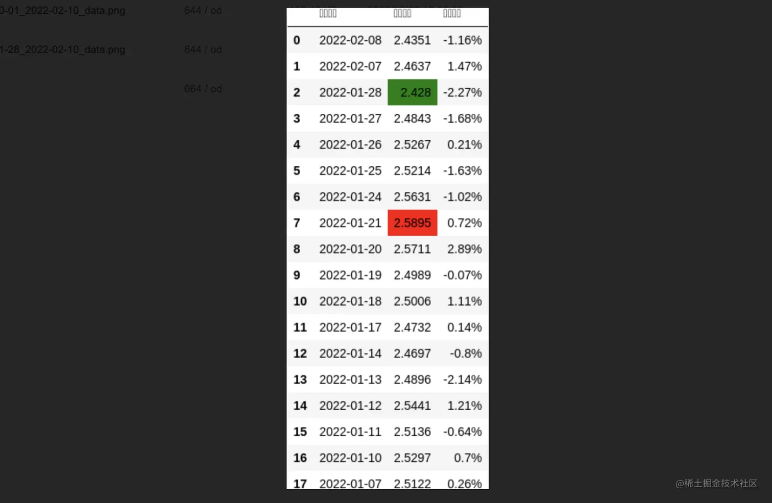 为了图片数据更好看,我们还使用了df.style设置数据表格样式(单位净值最大值、最小值高亮和日增长率添加百分号)。