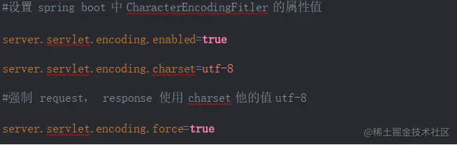 Spring Boot 项目默认启用了 CharacterEncodingFilter, 设置他的属性就可以