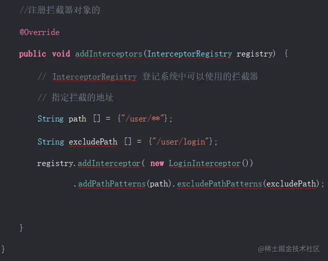 1)自定义拦截器类,实现 HandlerInterceptor 接口
