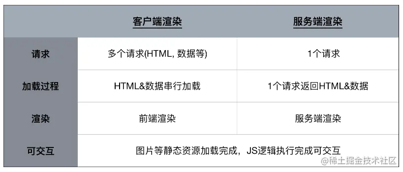 加载渲染过程如下: HTML + CSS + JS + Data -> 渲染后的 HTML