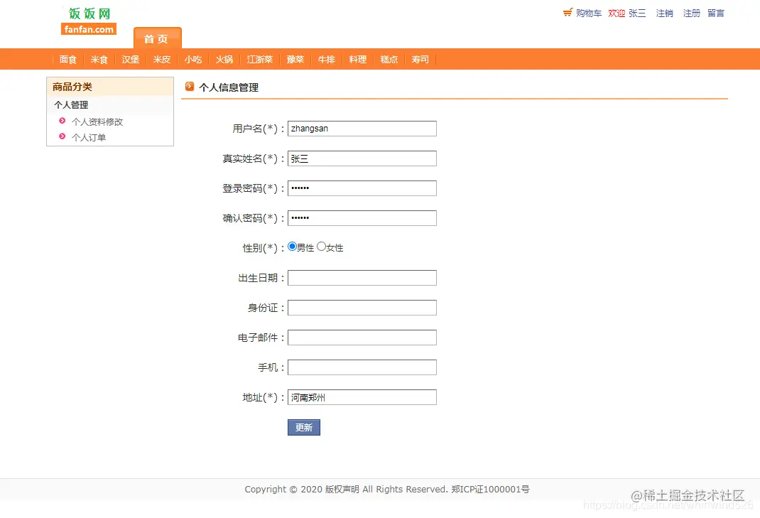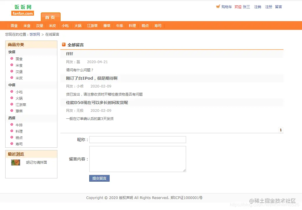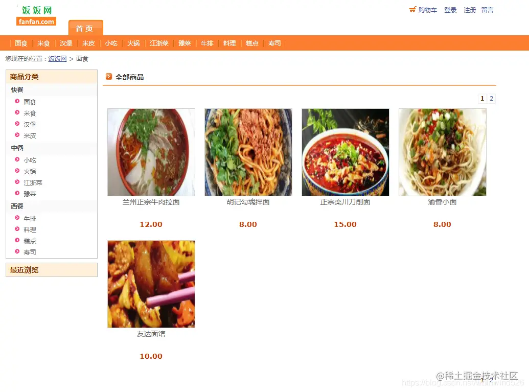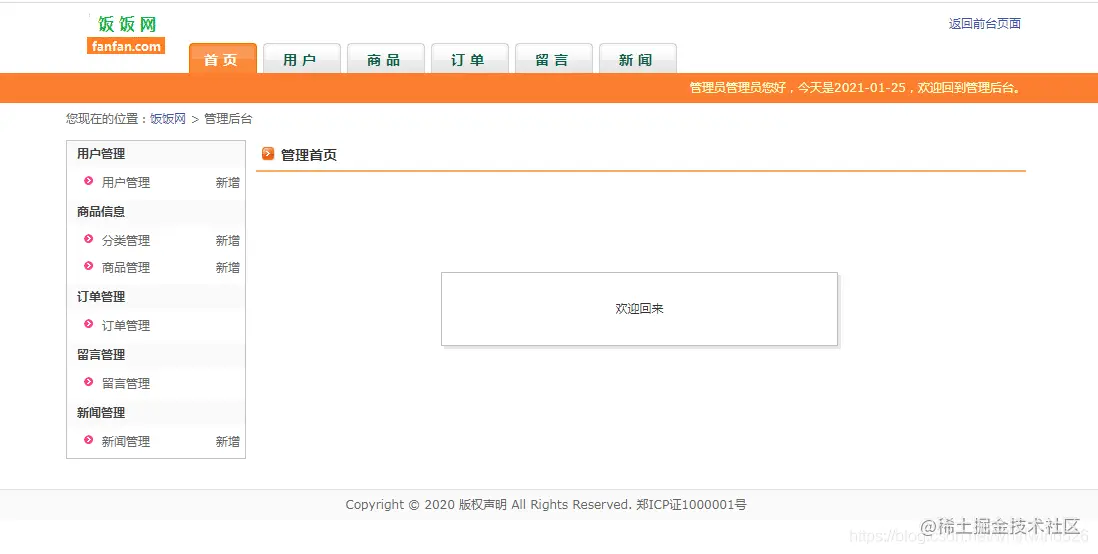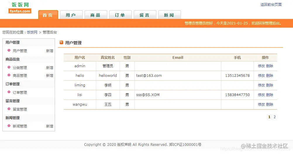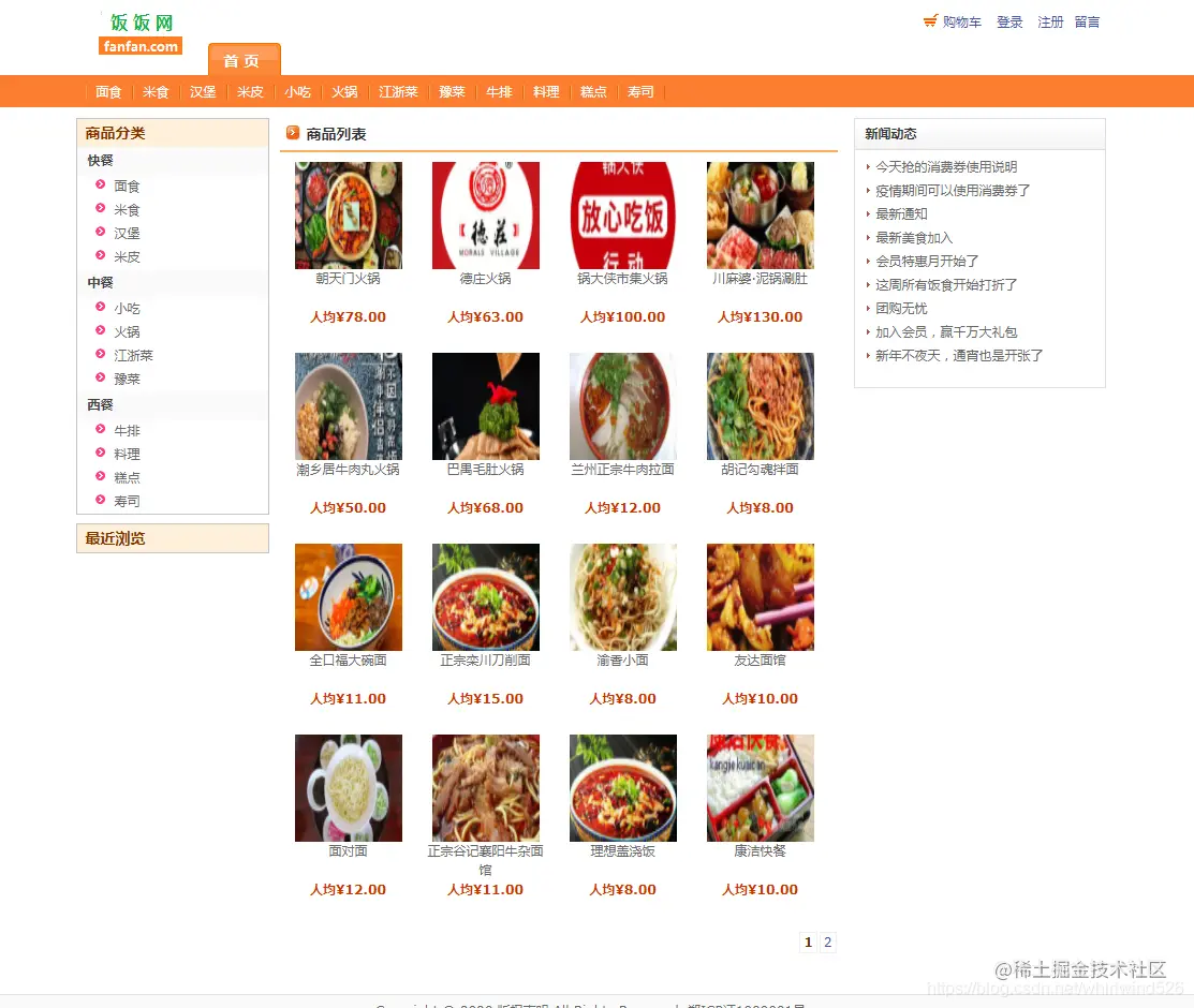 前台页面功能: