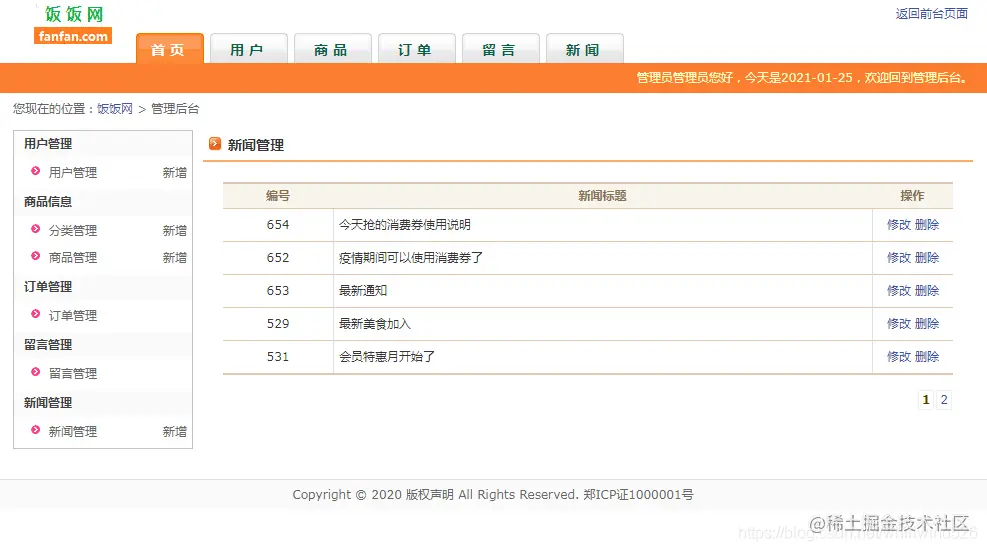 后台管理功能:
