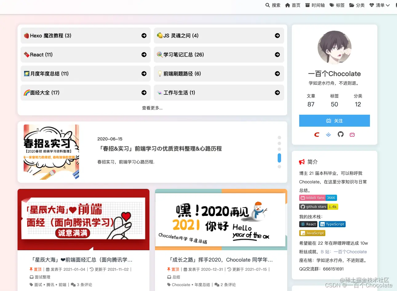 就拿我的个人博客为例吧,可以说是左右布局了,但这个适配比较简单,采用 flex 之后左边宽度定的 75%,右边定的 25%,如果在工作中这样做设计一定会挑毛病(害...)