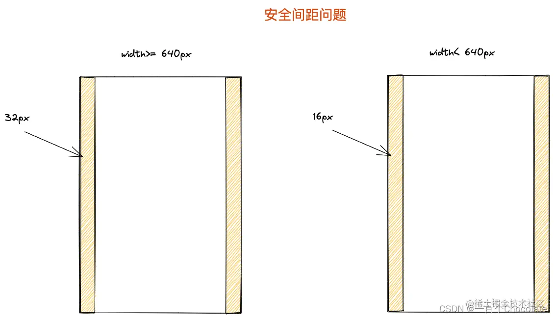 设计部门有这种说法,就是「安全间距」,就是设置一个 margin,防止内容超出,这个根据机型宽度会有不同的值,一般 PC 是 32px,移动端是 16px,看起来整体会比较舒服。