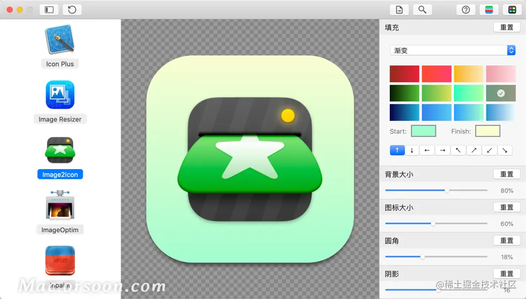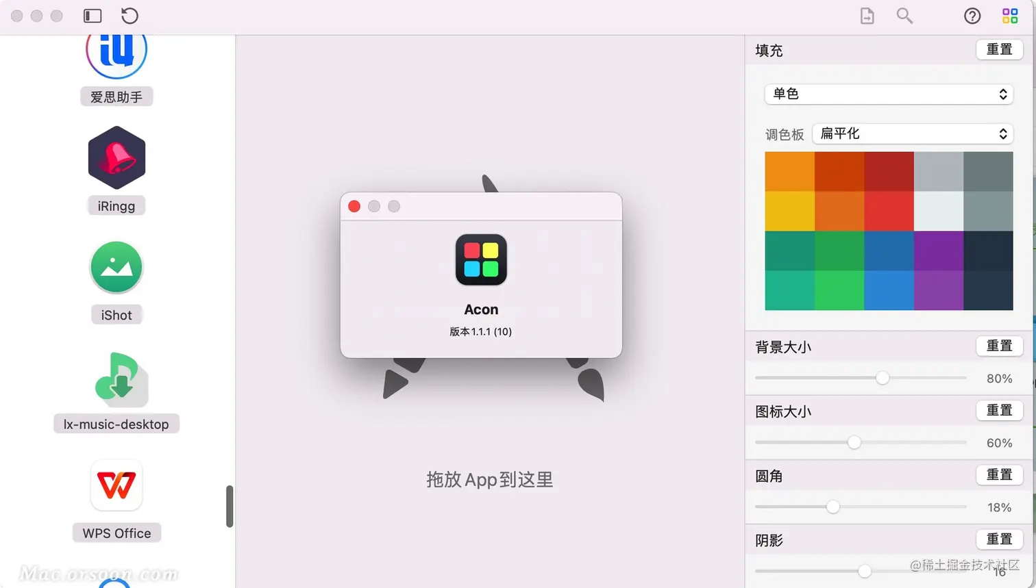 Acon for Mac是一款能够为您快速制作出Big Sur风格的APP图标制作软件,Acon Mac版能够为您快速制作出big sur风格图标,Acon Mac版非常适合有强迫症的朋友,如果想要让所有APP图标都同一风格,就试试Acon Mac版吧!Acon Mac还支持自定义颜色,可以是单色系,也可以是渐变色!