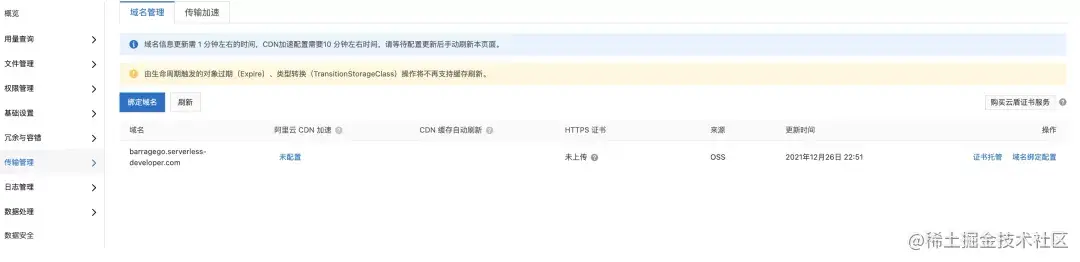 发现访问不同,检查发现原因是 apigateway 的域名和 oss 域名都未绑定成功,我们手动处理一下: