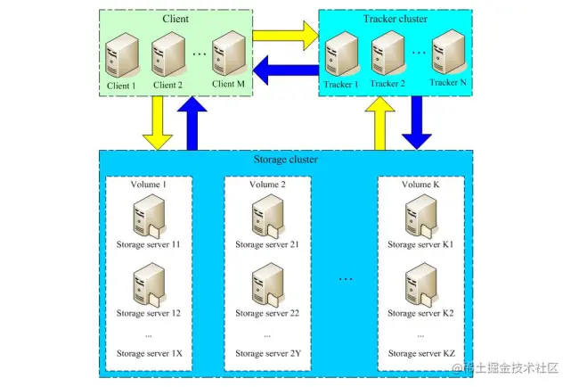 FastDFS 的架构比较简单,如下图所示: