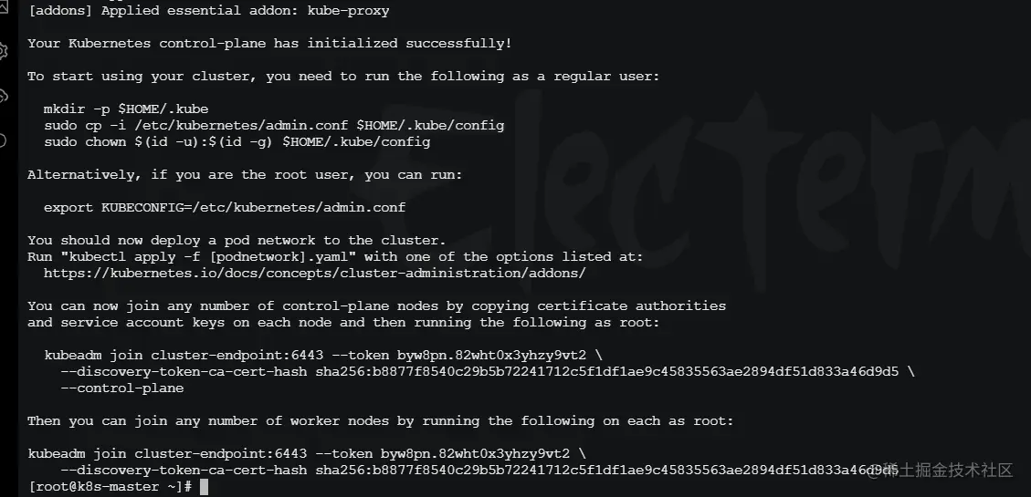 #查看主节点状态 可以看到主节点已经完成 如果没完成稍微等待一下 等上文中的pod资源全部完成后,就可以了
