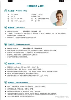 在面试之前,不得不聊聊简历,简历是职场的敲门砖,是拿到offer的通行证,那么对于一个初级测试工程师来说,应该如何写简历呢?可能对于新手来说,完全不知道怎么下手,这里我们从0开始写,首先你必须去找一份简历模板,可以是前程无忧,智联招聘,BOSS等自带的模板,也可以是网络上下载的模块,要求:上下结构,简单即可!不要太花哨!这里取几个栗子,什么样的模板是合适的!如下:(对于照片可有可无,长得Nice和可爱的妹纸除外)