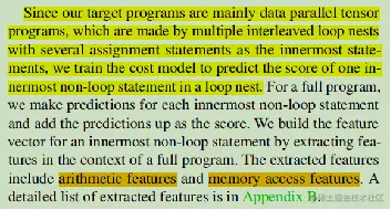 预测每个 non-loop innermost statement 的得分,可能比较抽象,上一些论文里的解释