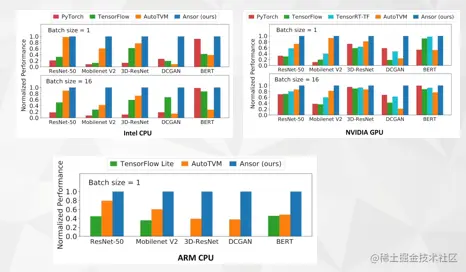 从上面给出的数据可以看出,不管是单算子、subgraph、整网来说,ansor 的表现都很棒。