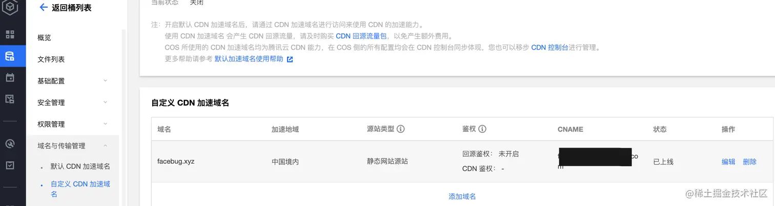 腾讯云的 COS 静态网站+自定义 CDN 加速