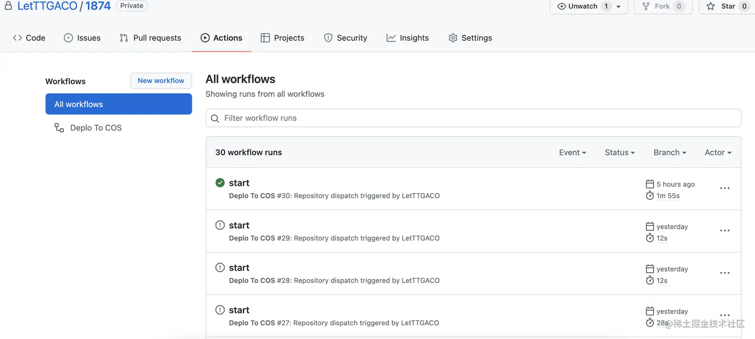 个人博客文章链接:语雀云端写作 Hexo+Github Actions+COS持续集成