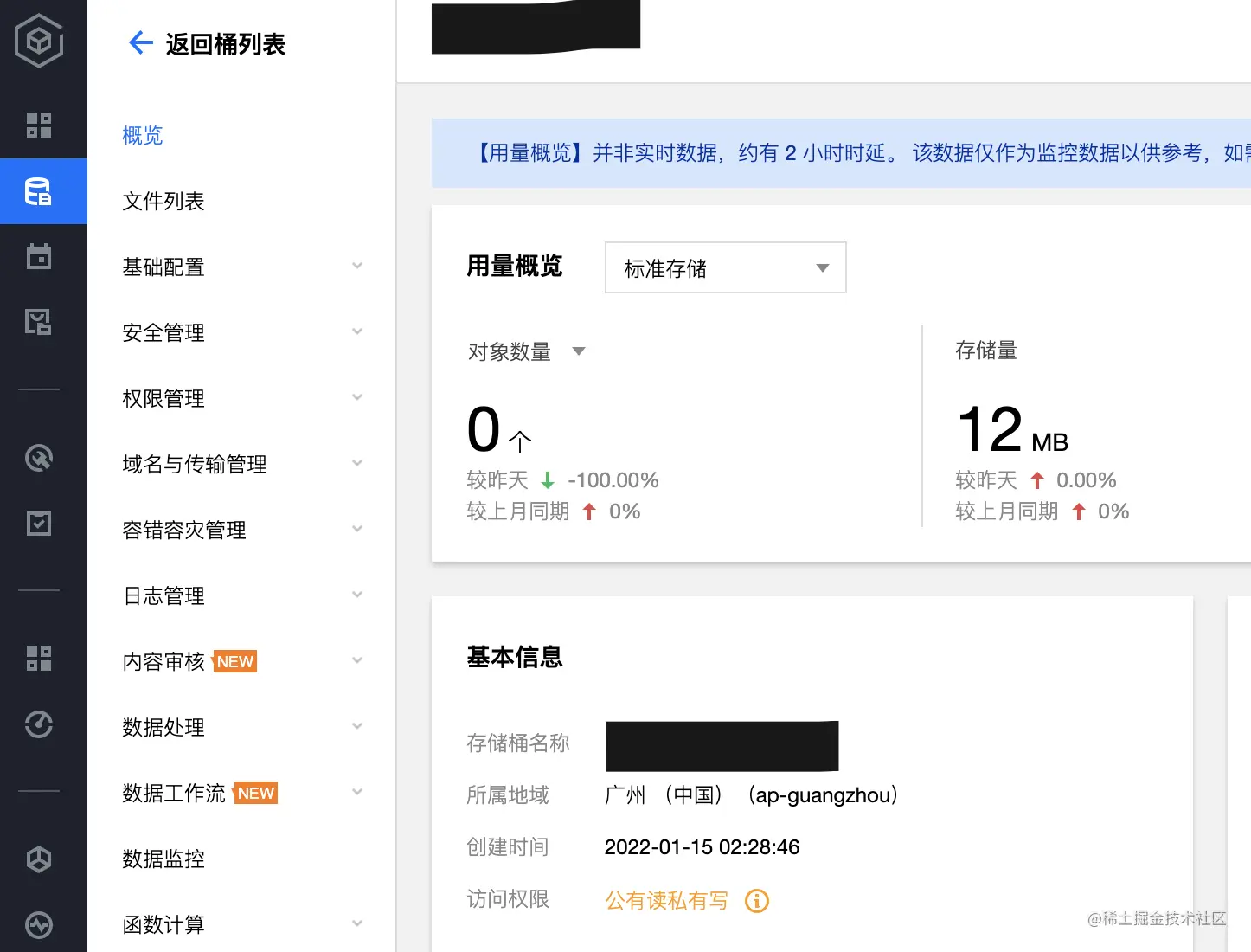 访问腾讯云对象存储控制台=>基本信息,获取存储桶名称和所属地域