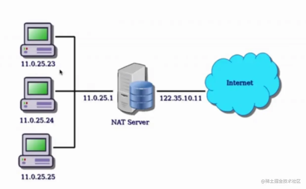网络地址转换协议Network Address Translation (NAT) 用来给你的(私网)设备映射一个公网的IP地址的协议。一般情况下,路由器的WAN口有一个公网IP,所有连接这个路由器LAN口的设备会分配一个私有网段的IP地址(例如192.168.1.3)。私网设备的IP被映射成路由器的公网IP和唯一的端口,通过这种方式不需要为每一个私网设备分配不同的公网IP,但是依然能被外网设备发现。