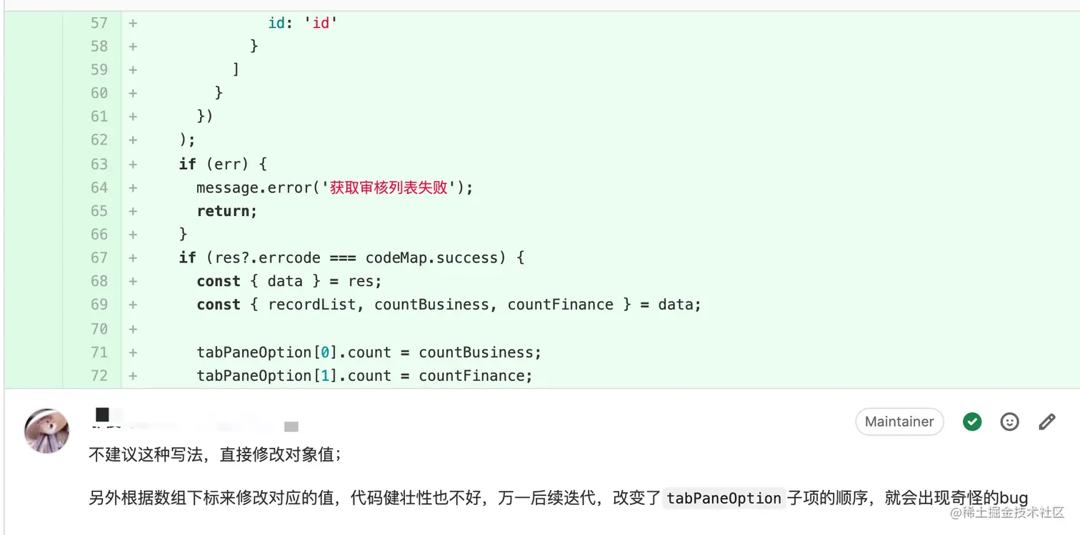 大家平时网上搜索能搜出一堆Code Review 实践、Code Review 流程、如何如何 Code Review 等等。好像实际的 review 记录并不多,恰好本人有幸担任前端小组长一职,平时摸鱼就去偷偷看看大家又写了什么优秀代码。所以今天就由小弟我,给大家分享一下,小厂一线前端平时写的代码😸