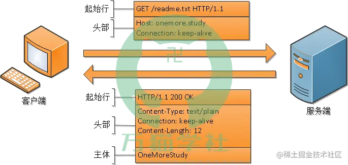HTTP报文可以分为:请求报文(request message)和响应报文(response message)。当客户端向服务端发送请求时,就是发送请求报文;当服务端向客户端返回数据时,就是返回响应报文。比如,获取一个文本需要的请求报文和响应报文: