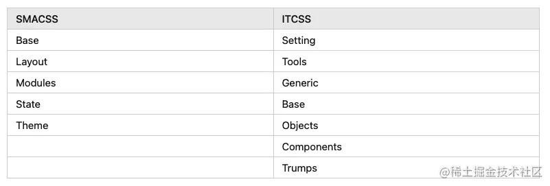 在我们设计CSS架构时,我们首先想到的一定是SMACSS和ITCSS,因为它们两个对CSS进行了分类分层的划分。