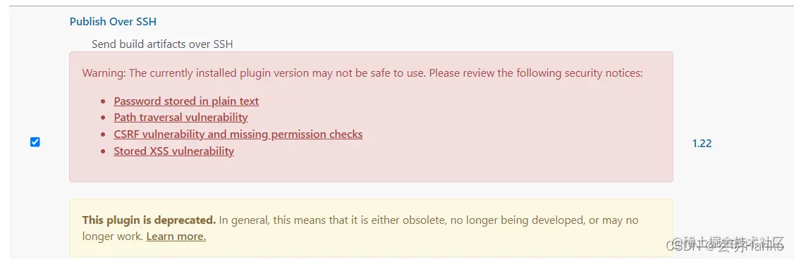 大概意思就是说publish-over-ssh存在安全问题,下架了。。。。。。。。