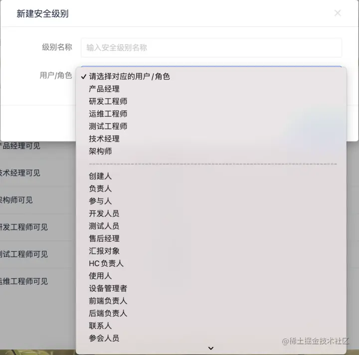 - 安全级别与角色 表示哪些角色(包括 项目角色和任务角色)可见