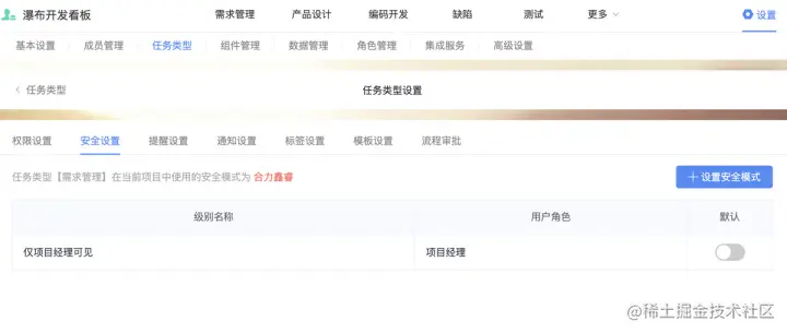 - 项目中任务类型与安全级别的配置