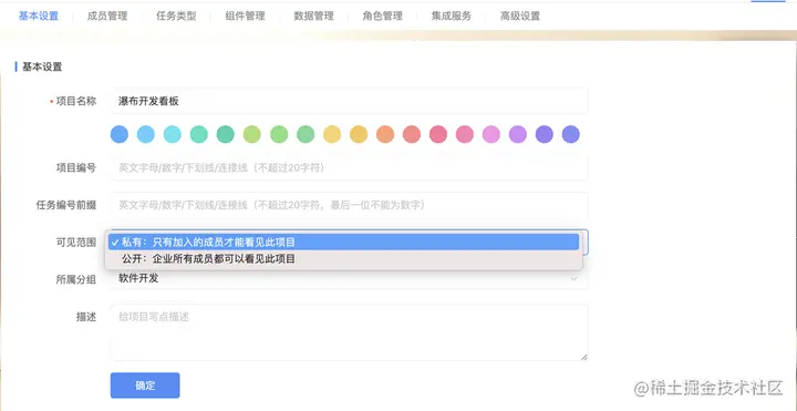 项目的可见权限是通过项目两个字段来控制的,一个是visibility(公开/私有),另一个是 members(项目成员),当项目是公开的,所有成员可见,当项目是私有的,只有成员列表存在的才可见。 使用: