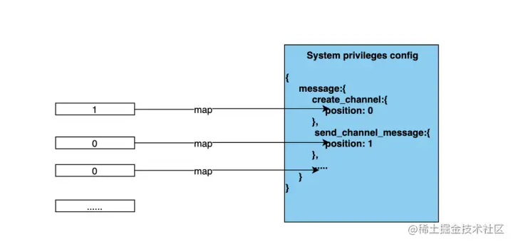 - 如何获取角色对应的权限列表? 服务端读取角色表找到对应 权限值(由 0 和 1 组成的字符串),然后根据系统配置进行排序,返回给前端,前端通过 0 1 值排列和勾选。