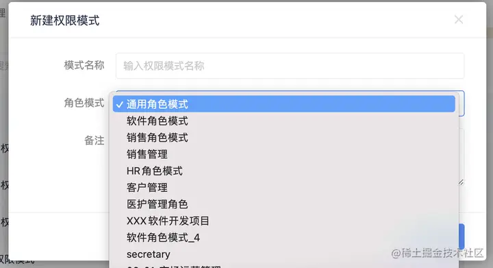 - 安全模式与角色模式 安全模式与角色模式的绑定,表示该安全模式下哪些角色模式的角色可见。