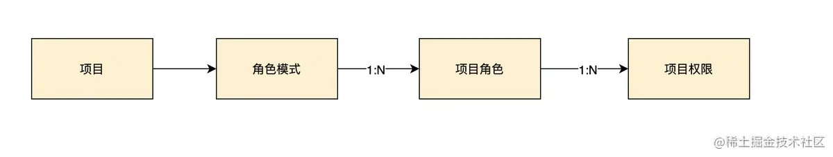 项目权限的设计中有角色模式、项目角色、权限三部分,这三者关系大致为: