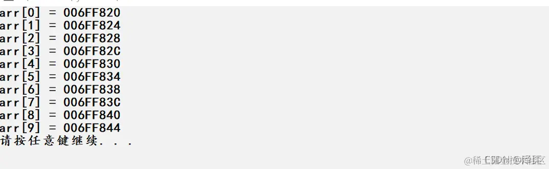 printf("arr[%d] = %p\n", i, &arr[i]);