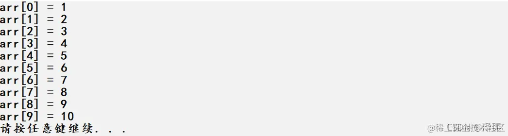 printf("arr[%d] = %d\n", i, arr[i]);//依次输出数组