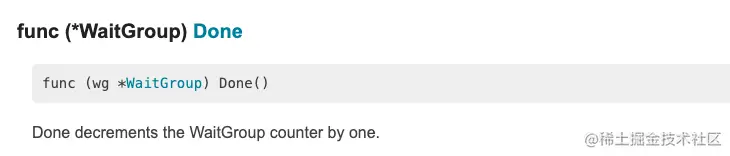 Done()方法,就是当WaitGroup同步等待组中的某个goroutine执行完毕后,设置这个WaitGroup的counter数值减1。