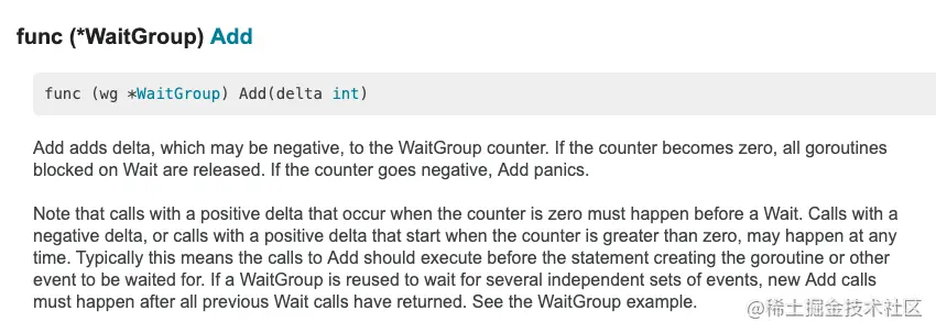 Add这个方法,用来设置到WaitGroup的计数器的值。我们可以理解为每个waitgroup中都有一个计数器 用来表示这个同步等待组中要执行的goroutin的数量。