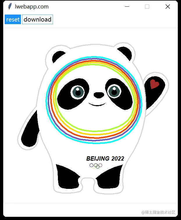 下载功能用到了Pillow的ImageGrab截图功能,可以将Canvas上的冰墩墩绘制结果保存为一张PNG图片。