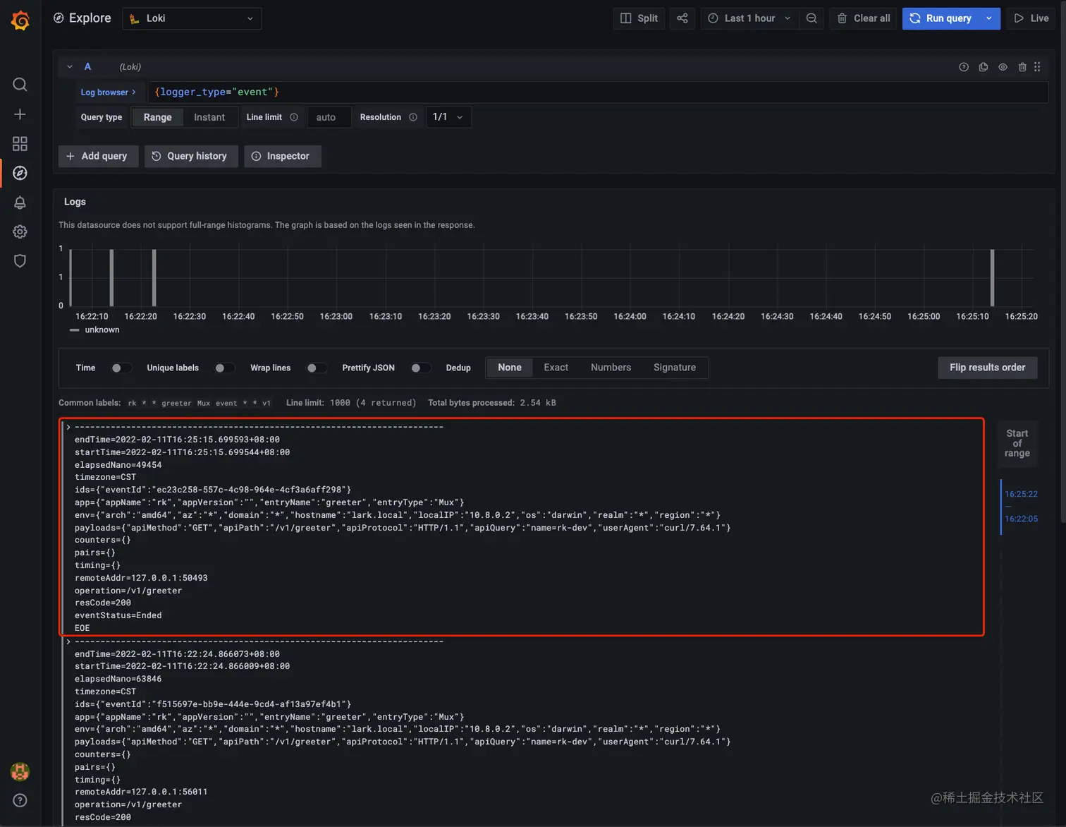 下面的日志格式来自 rk-query ,用户也可以选择 JSON 格式,我们稍后会介绍。