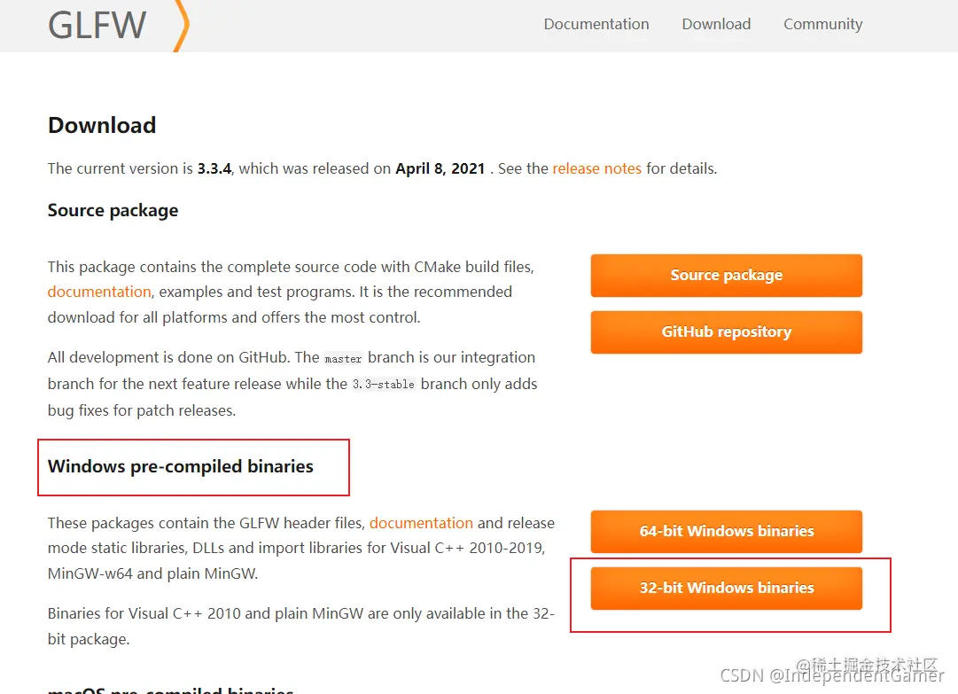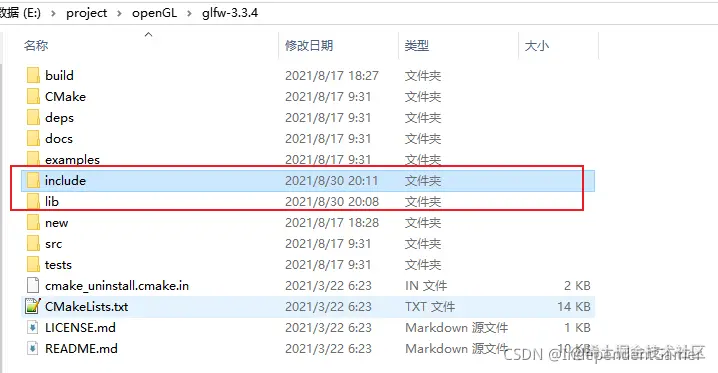 选32位就行,最新版本稳定版本 :glfw-3.3.4,下载源码包之后,将其解压并打开。