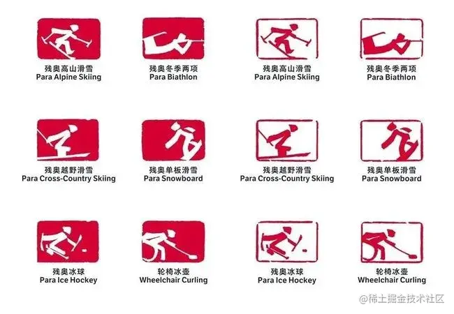 北京2022年冬奥会和冬残奥会体育图标再次选用了篆刻艺术形式,与“中国印”的设计理念遥相呼应。