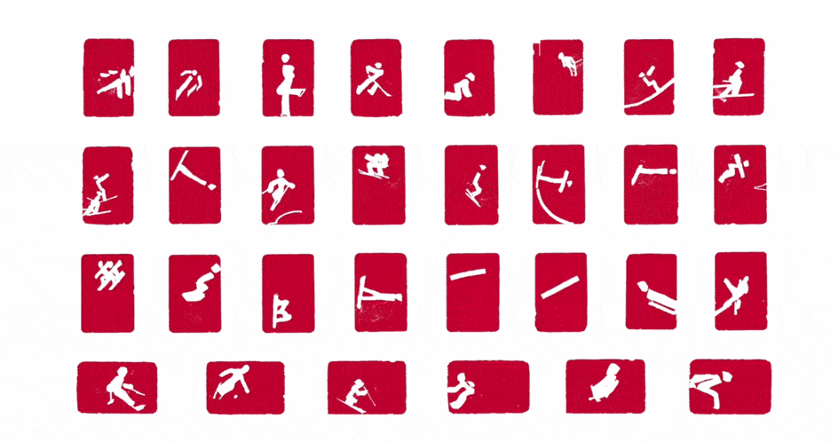 不同的是,这次的图标更偏重“汉印”风格。30个“小红人”舞动于一方方汉印的方寸之间,人物线条所蕴含的书法笔意加之中国传统印泥颜色“霞光红”,表现出冬季运动项目最有特点、最优美的瞬间。