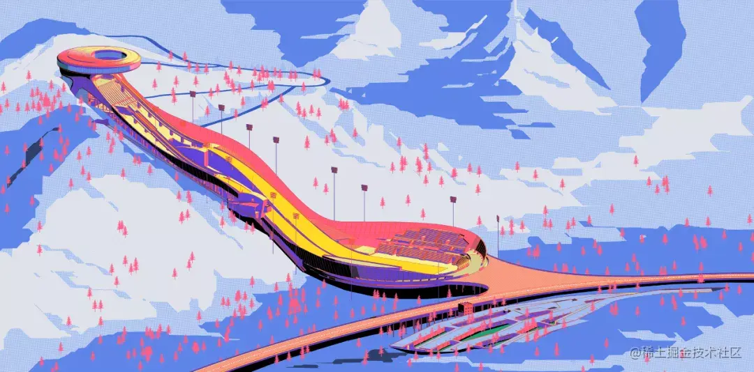 跳台滑雪的赛道是S形曲线,与传统文化符号“如意”形象契合,寓意吉祥而美好。