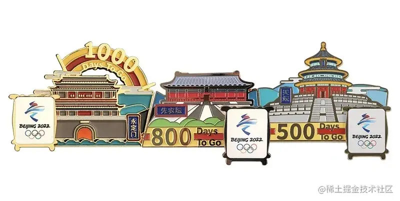 北京冬奥会纪念徽章“北京中轴线”,以冬奥会倒计时为时间主线,由南到北的14处代表性建筑和北京2022年冬奥会开幕式举办场馆国家体育场(鸟巢)为冬奥会倒计时15个主要时间节点,从空间和时间两个维度体现北京冬奥会脚步的临近。