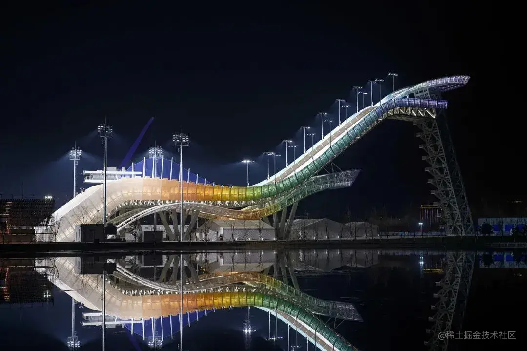首钢滑雪大跳台既是单板大跳台运动(Big Air)在全球的首座永久跳台,也是全球首个设立在城市工业遗址的永久奥运场馆。其剖面结构不仅满足大跳台比赛的要求,还可以通过临时附加正四面体结构在48小时内完成向空中技巧场地的转换,这样的变换技术亦是全球首例。