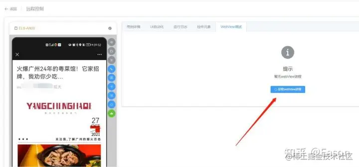 1、 进入 webview 调试,点击【获取 webview 进程】