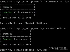 当然 sys 系统库本身已经提供了启用所有需要的功能的存储过程,比如:启用所有的 wait instruments:CALL sys.ps_setup_enable_instrument('wait');启用所有事件类型的 current 表:CALL sys.ps_setup_enable_consumer('current');