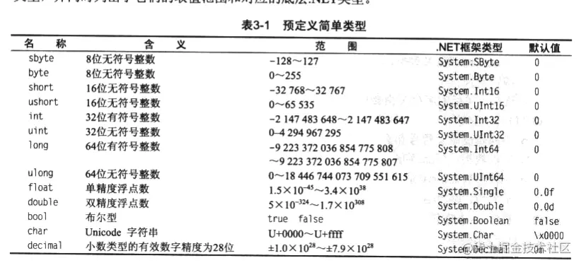 在C#中提供15种预定义类型,其中包括13中简单类型和2种非简单类型。