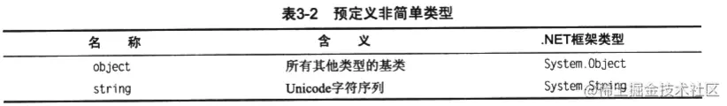 string,是一种Unicode字符数组。 object,是所有其它类型的基类。